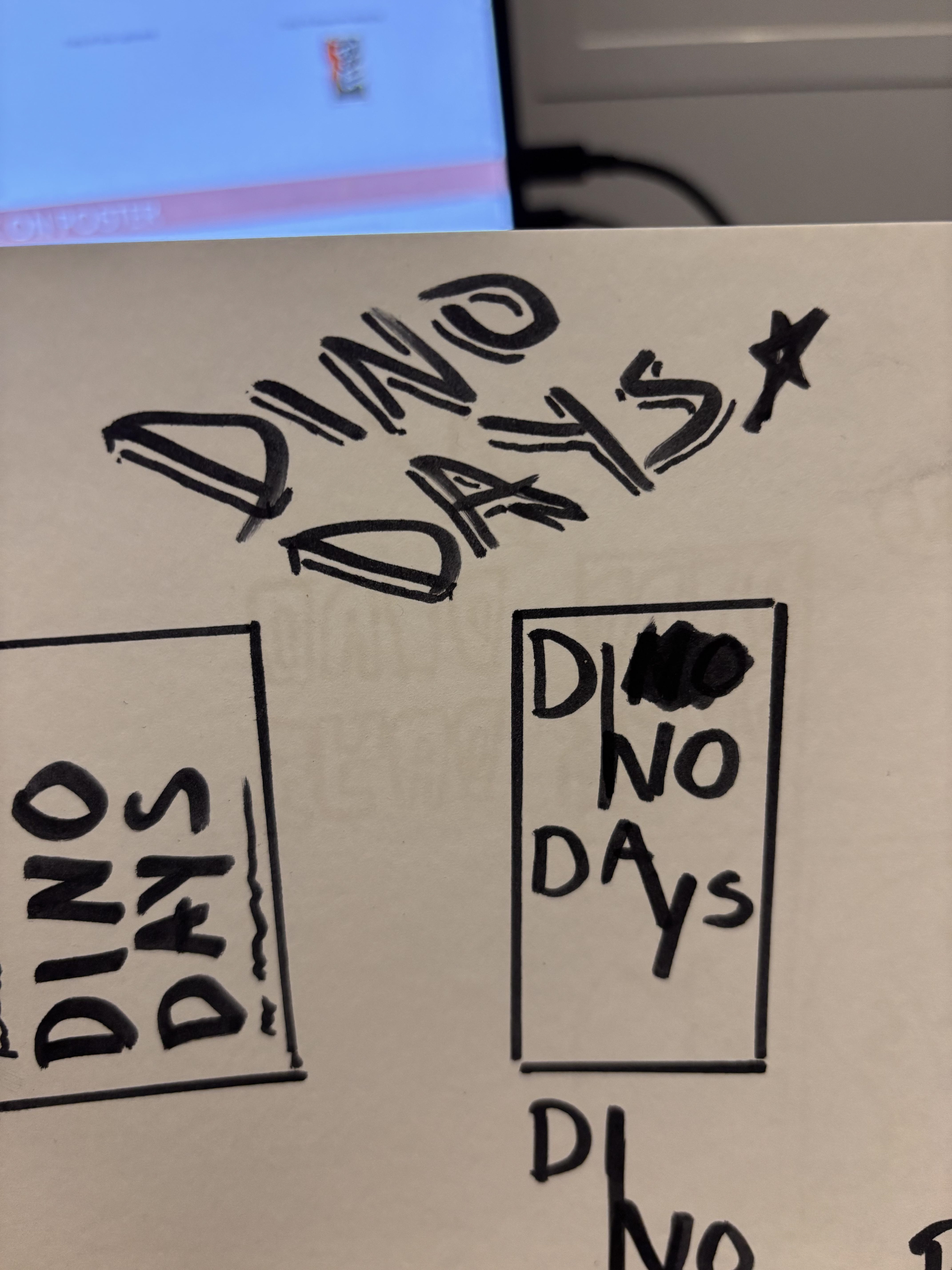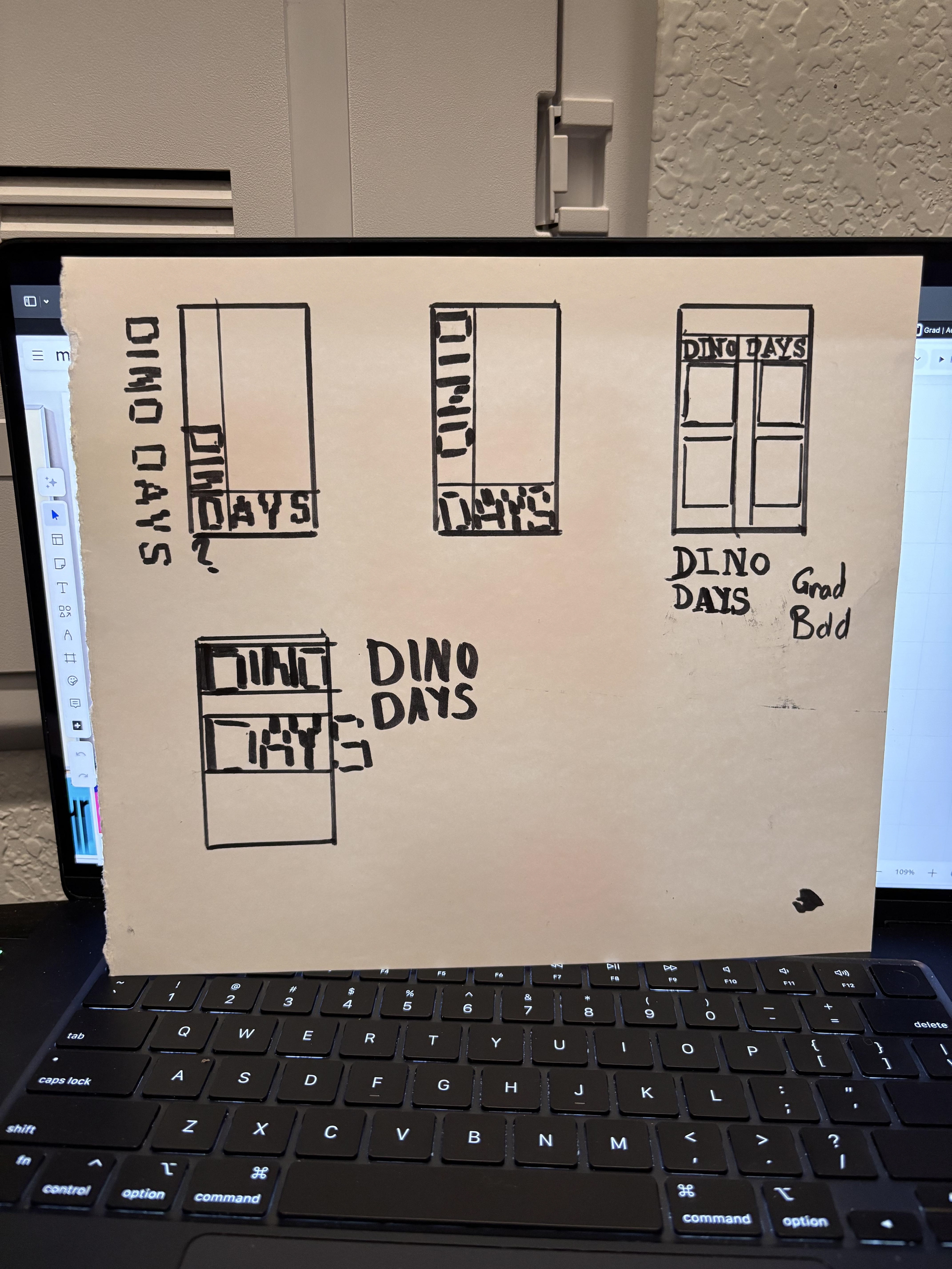 These are my initial sketches and drafts for the 'Dino Days' event branding. I wanted to make the theme based on comics and have it be targeted towards people of all ages. Something that wasn't just fossils and earth toned colors. This was my take on using dinosaur related elements and implementing them into a design that targets people of all ages that are into dinosaurs and paleontology.