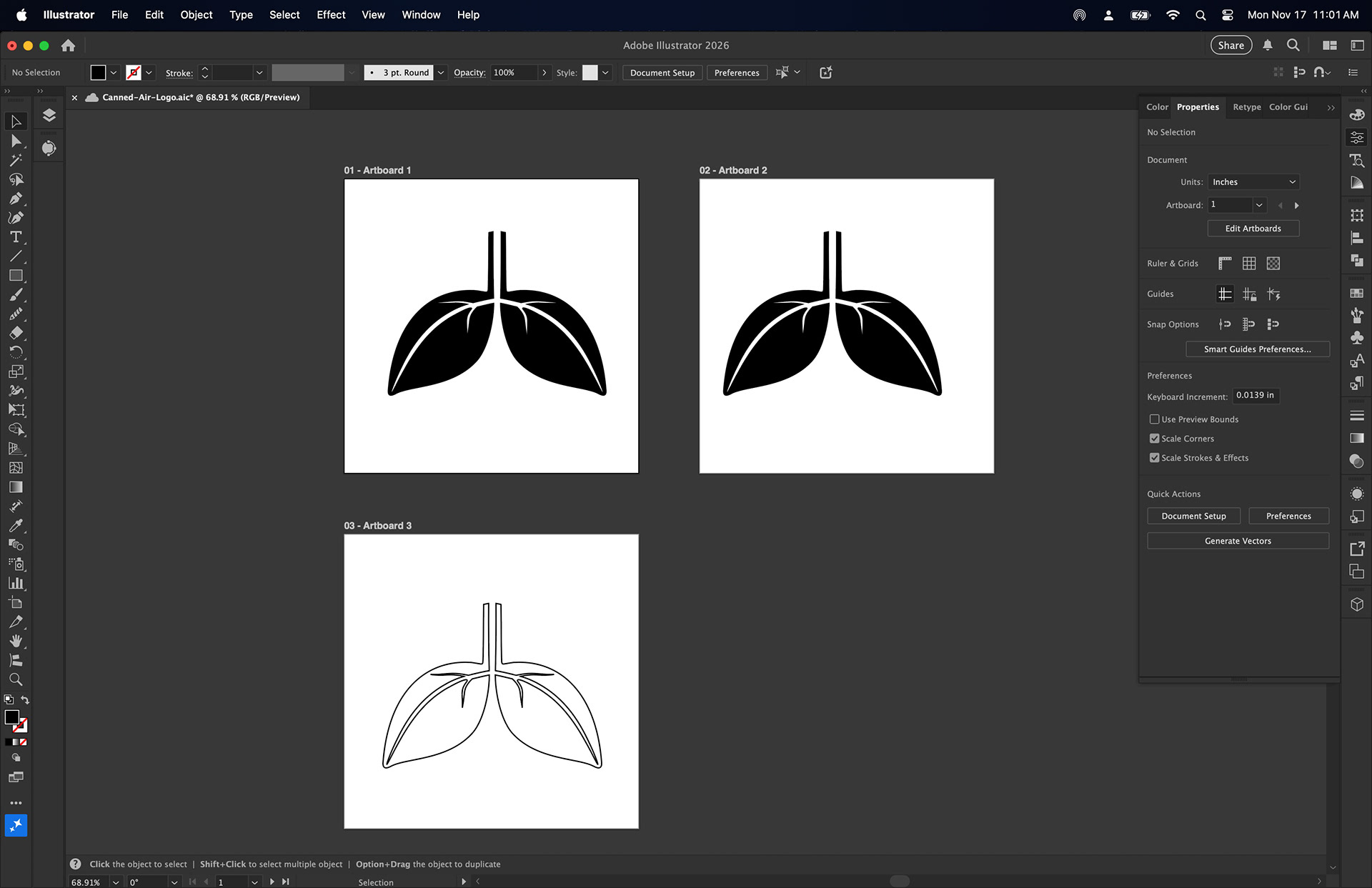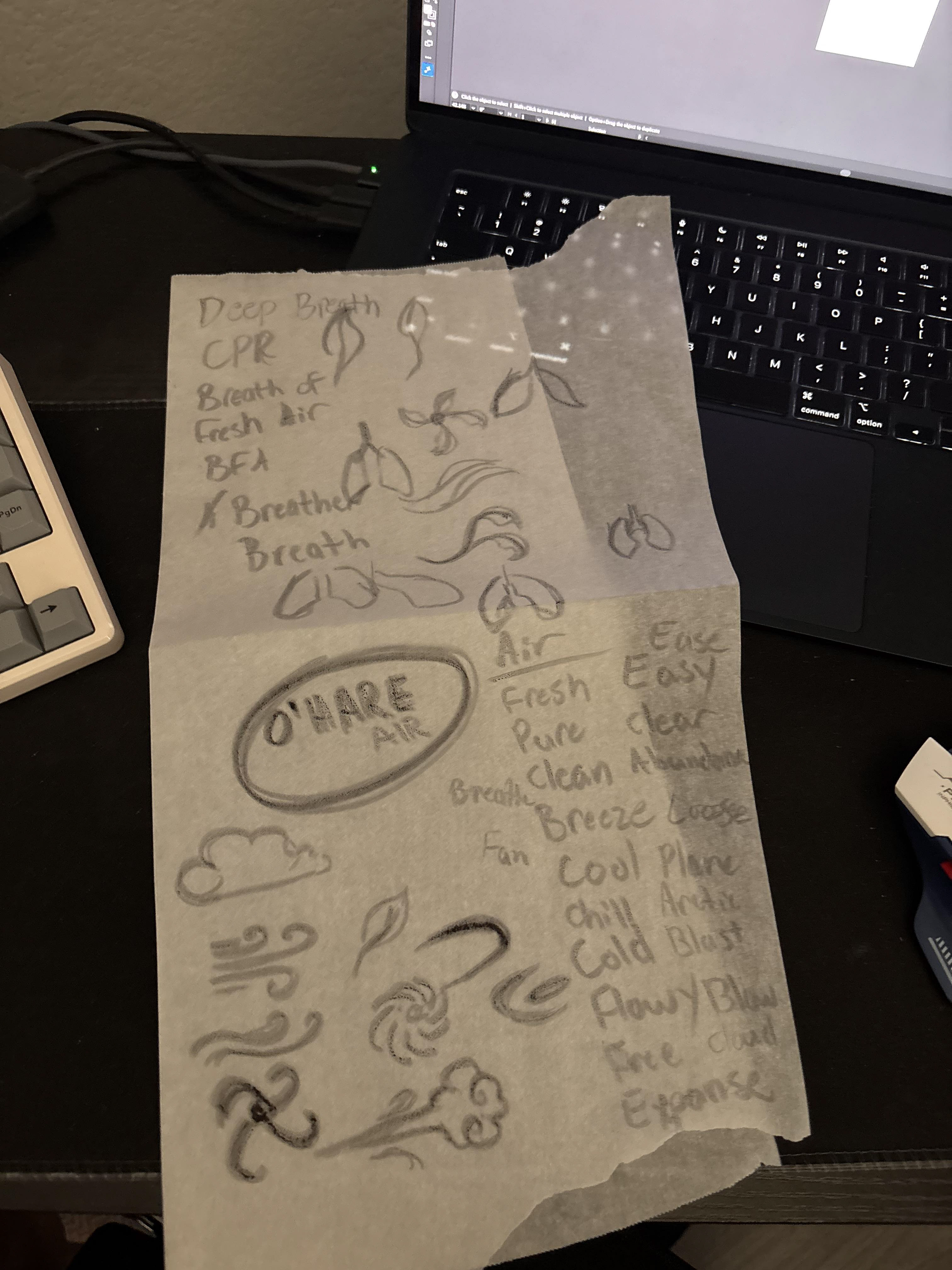 On the left is my initial thought process behind the design and name of the brand. I took the idea of lungs for air and leaves to represent the purity of the air and combined the two to make the logo and branding you see above.