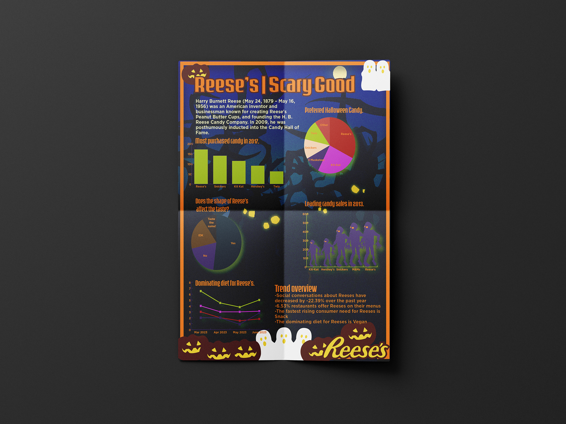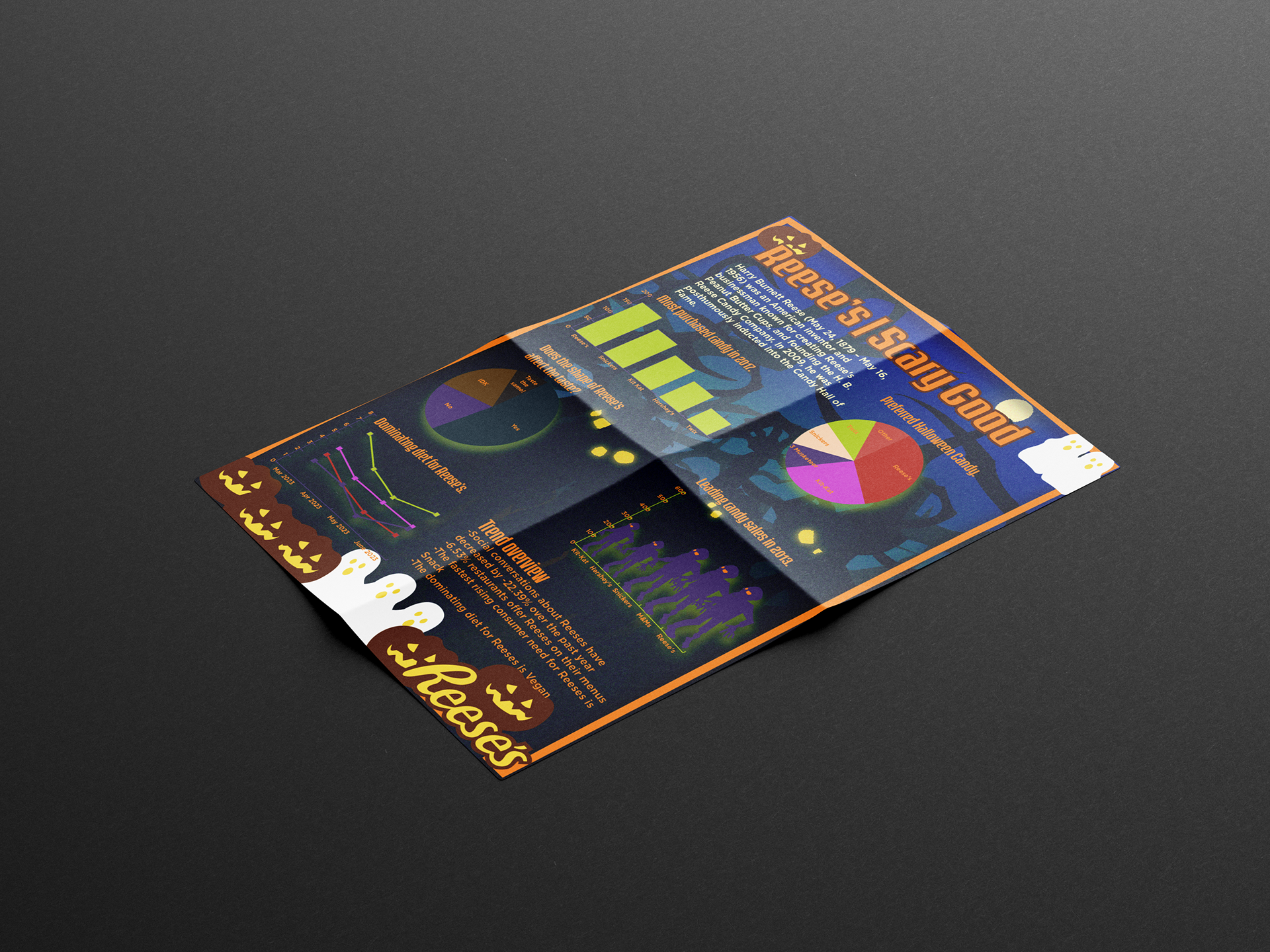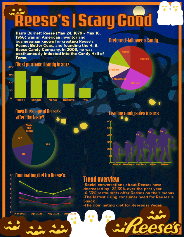 The goal of this project was to create an infographic that utilizes stylized graphs and imagery with a halloween theme.