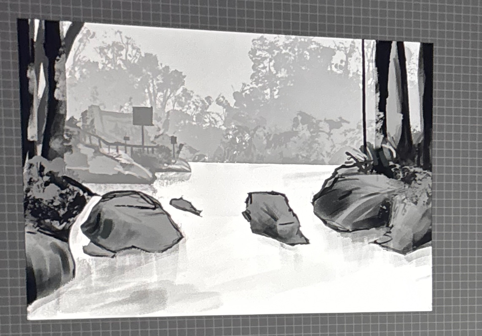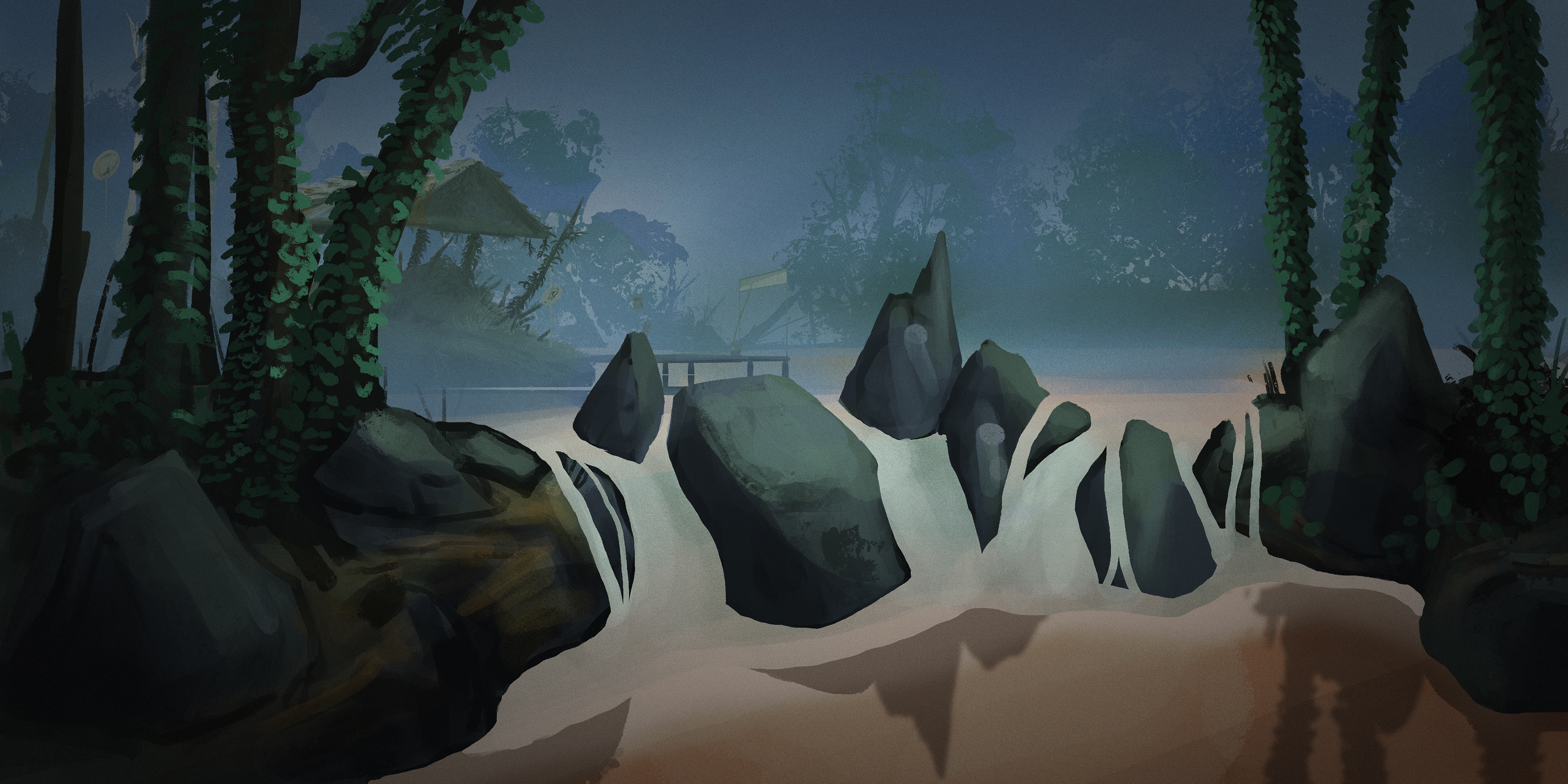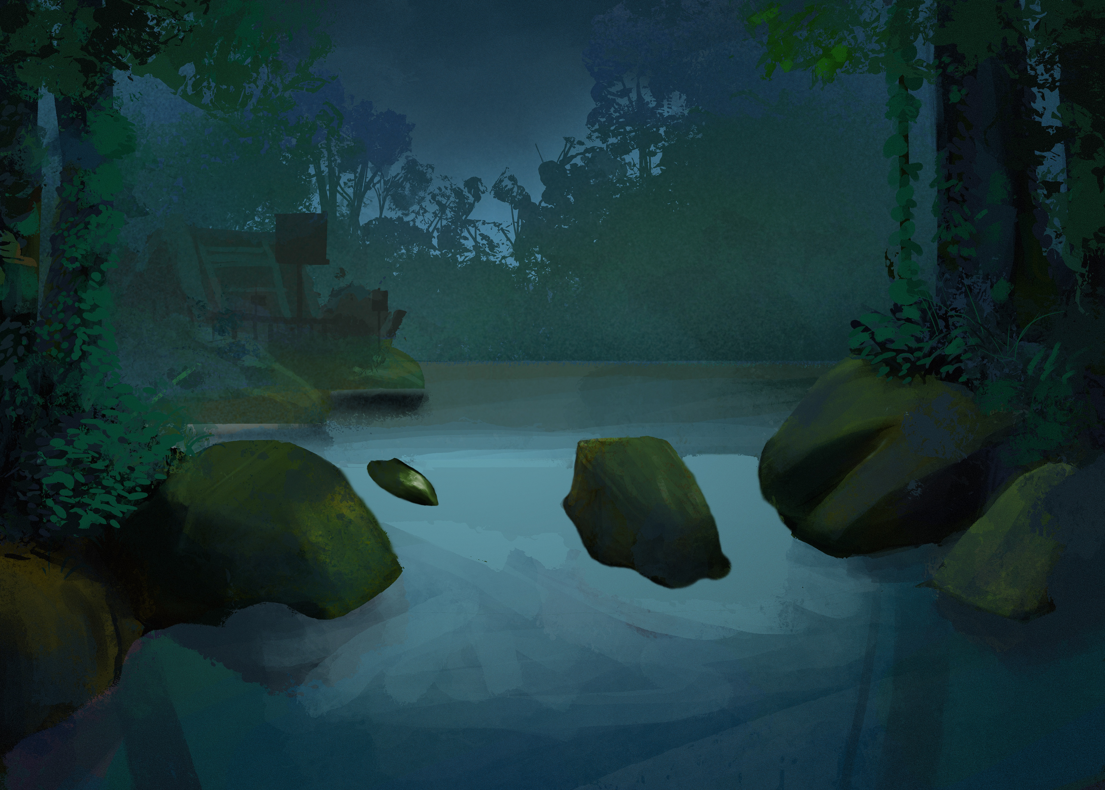 This was my first attempt at the creation of this scene before I decided to start over. The shrubbery was fine, but something about it felt off and I decided to just start over.